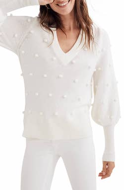 Yesterday it dawned on me that I probably wear white jeans in the winter more than I do in the summer. That sounds like an odd thing, but I've realized that I love the texture contrast of white denim with cozy knits more than anything else.